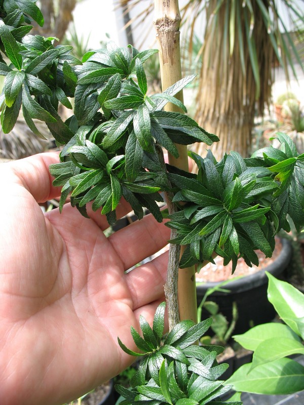 Letzten Sommer konnte ich in einer Baumschule - Heinrich sei Dank für den Tipp - /*Gleditsia triacanthos 'Goofy'*/ erwerben. Erstmals gesehen und natürlich nicht stehen gelassen. Mit der recht großen bestachelten Ursprungsart hat dieser Kultivar mit seinen kleinen büschelartig angeordneten Blättchen wenig Ähnlichkeit, ganz zwergig ist aber auch nicht. Mal sehen, was daraus wird?!