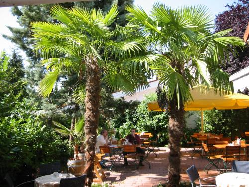 Zwei schöne ca 6m hohe Hanfpalmen im Biergarten vom Brauhaus in Mainz- Kastell !!!!