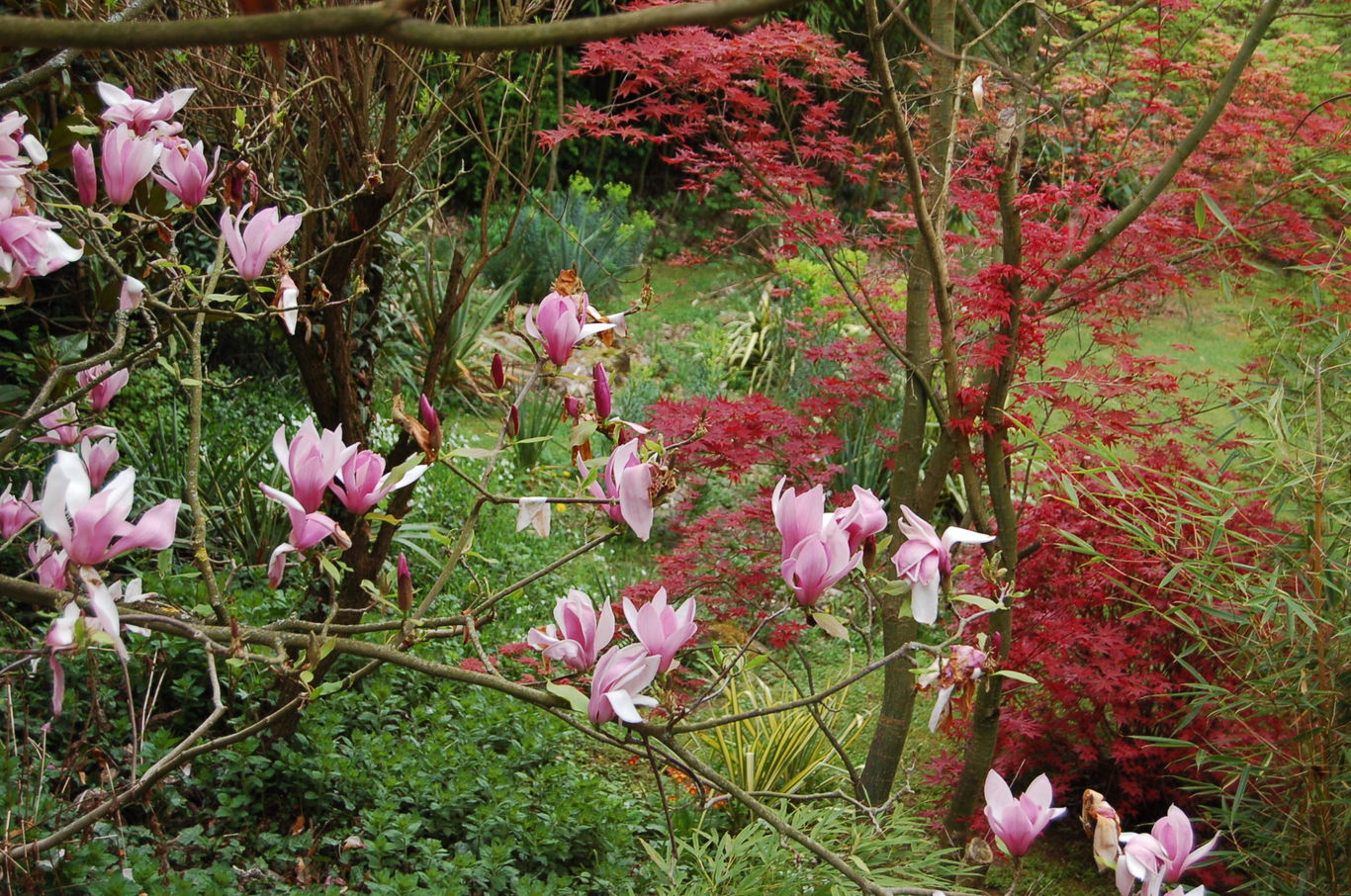 ebenfalls vom Balkon aus: /*Magnolia 'Royal Crown'*/ und Acer palmatum Deshojo#AM