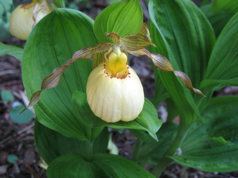 mit Cypripedium pubescens mit ziemlich riesiger Blüte