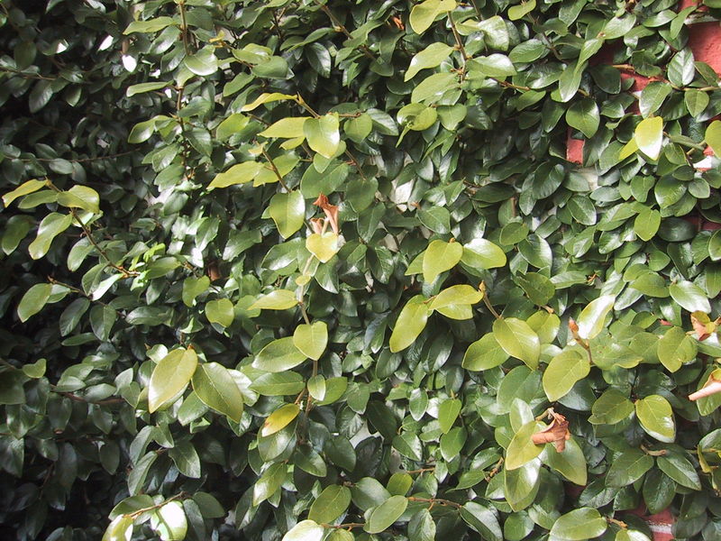 Ficus pumila an der Hauswand hochkletternd mi dimorphen Blättern, d.h. ab einer Höhe von ca 3m werden die Blätter deutlich härter und größer, einfach unglaublich!!!!!