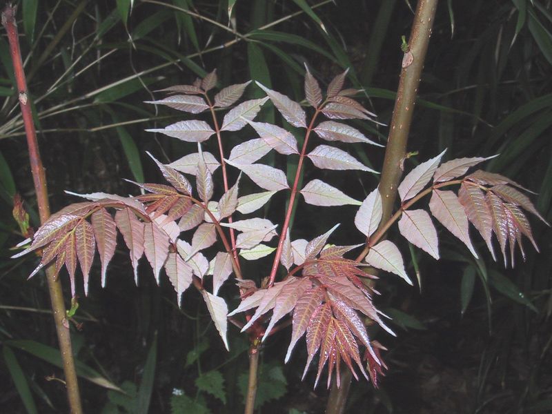 Lachsfarbene Blätter zieren die wunderschöne Cedrela (Toona) aus China