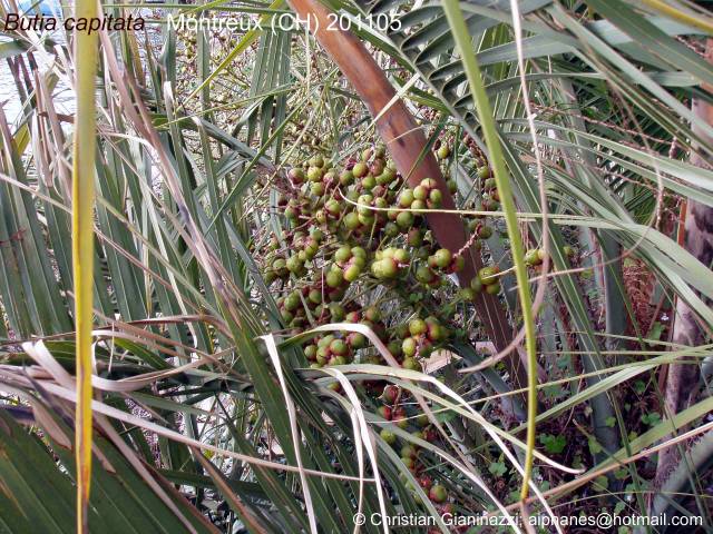 Die oben gezeigte B. capitata hat 2005 gefruchtet. Ist das ev. die erste „Freiland-Butia“, die in der Schweiz (nördlich der Alpen), Deutschland und Österreich gefruchtet hat? Hoffentlich fruchtet die B. capitata var. strictior auch, dann komme ich endlich an Samen dieser Varietät heran. Über die Keimfähigkeit der „Montreux-Butia“ werde ich auch noch berichten.