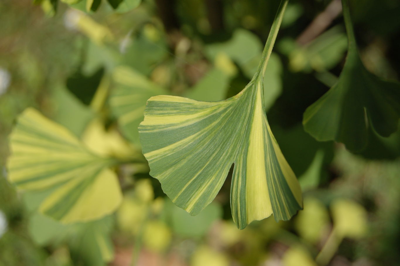 gibt es mittlerweile vom Gingko-Baum. Hier /*Gingko biloba Variegata*/ #AM