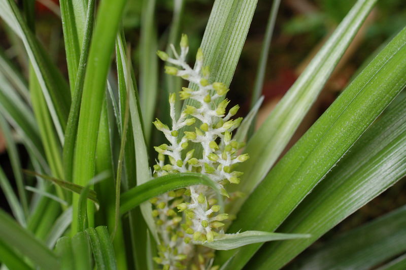 der Blütenstand der /*Astelia banksii*/ist zwar nicht gerade berauschend aber die metallisch glänzenden Blätter sind dafür um so auffallender