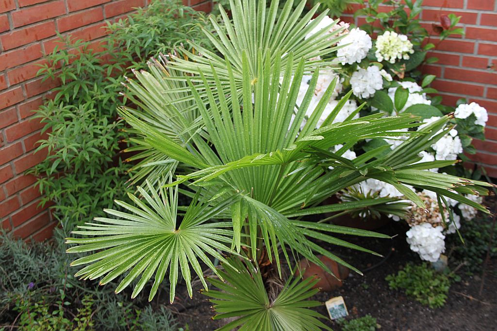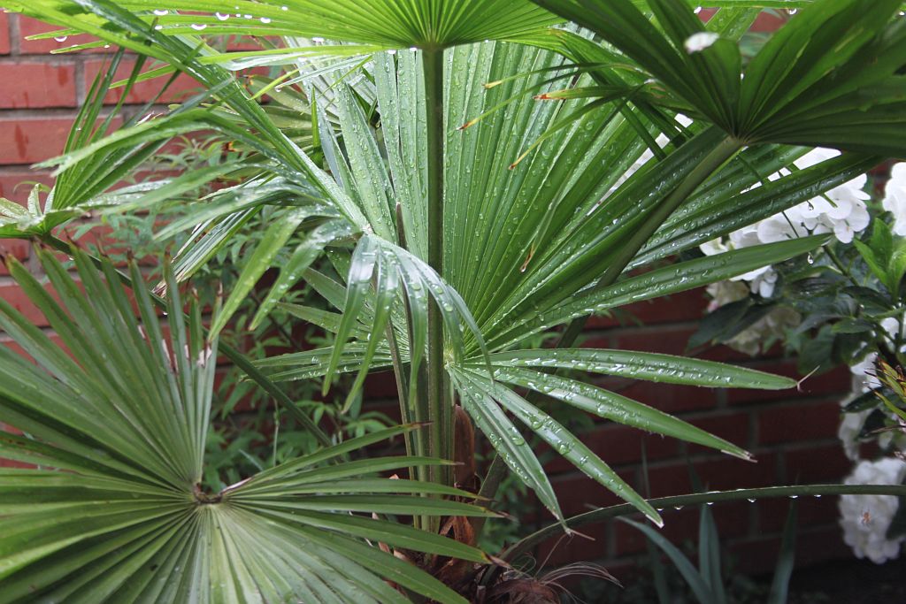 Trachycarpus fortunei startet jetzt richtig durch und schiebt ein Blatt nach dem anderen.
