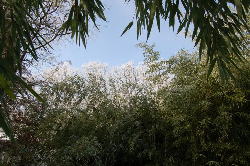 Eingerahmt vom Vivax-Dschungel Blick auf /*Phyllostachys nigra Henonis*/ im Rauhreif
