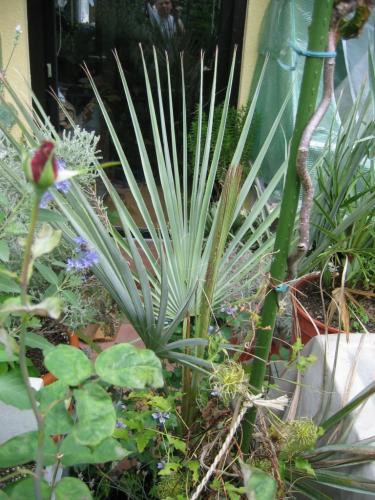 Diese schon größer Brahea habe ich vom Kollegen Martin/ KLein-Winternheim und diese wächst im Kübel erstaunlich schnell- seit Mai etwa 3 Blätter und 10 cm Stamm- es öffnet sich grade das 4. was ziemlich groß werden dürfte.