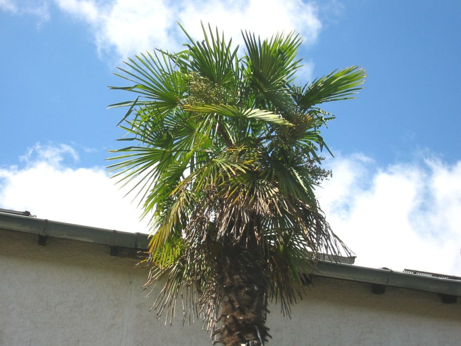 Diese weibliche Trachy hat ihre reifen Samen in luftiger Höhe hängen.