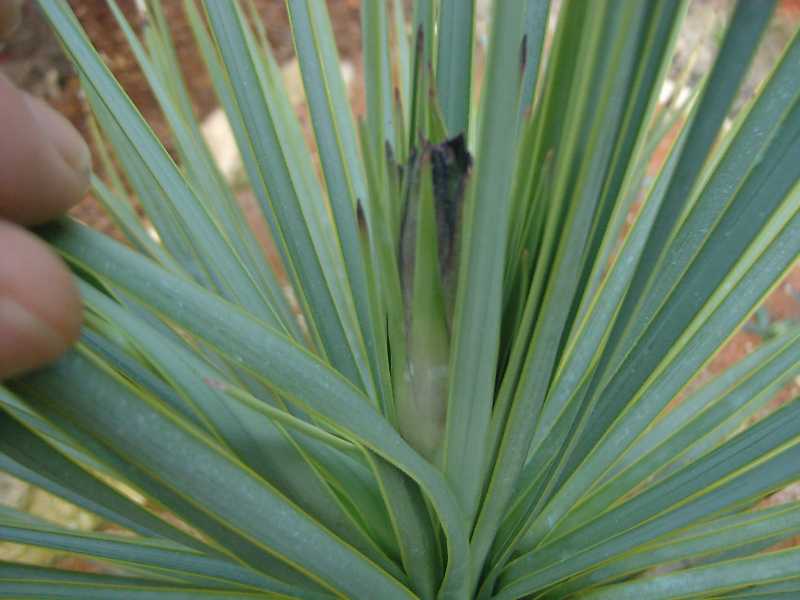Heute habe ich an meiner erst vor einem Jahr ausgepflanzten Yucca thompsoniana etwas entdeckt, was für mich wie ein beginnender Blütenstand aussieht.