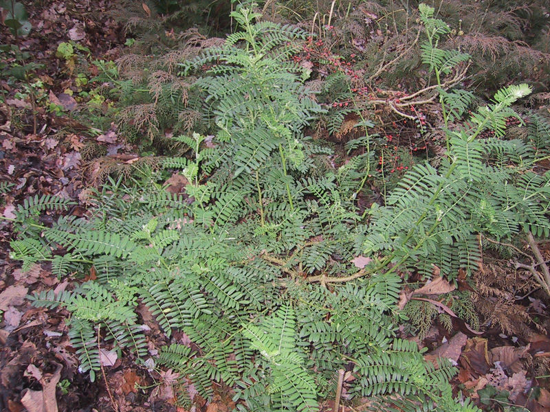 /*Clianthus puniceus*/ von der neuseel. Nordinsel - und dort fast ausgestorben- mit einem Durchmesser von über 3m!! Ob sie den Winter allerdings überlebt, ist die Frage???
