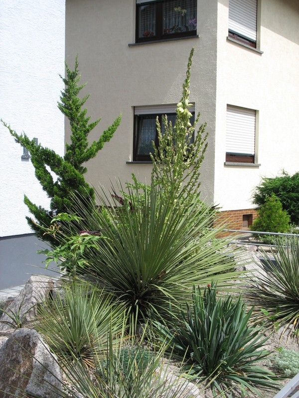 in Blüte. Großer stark verzweigter Blütenstand, ganz ähnlich Y. elata