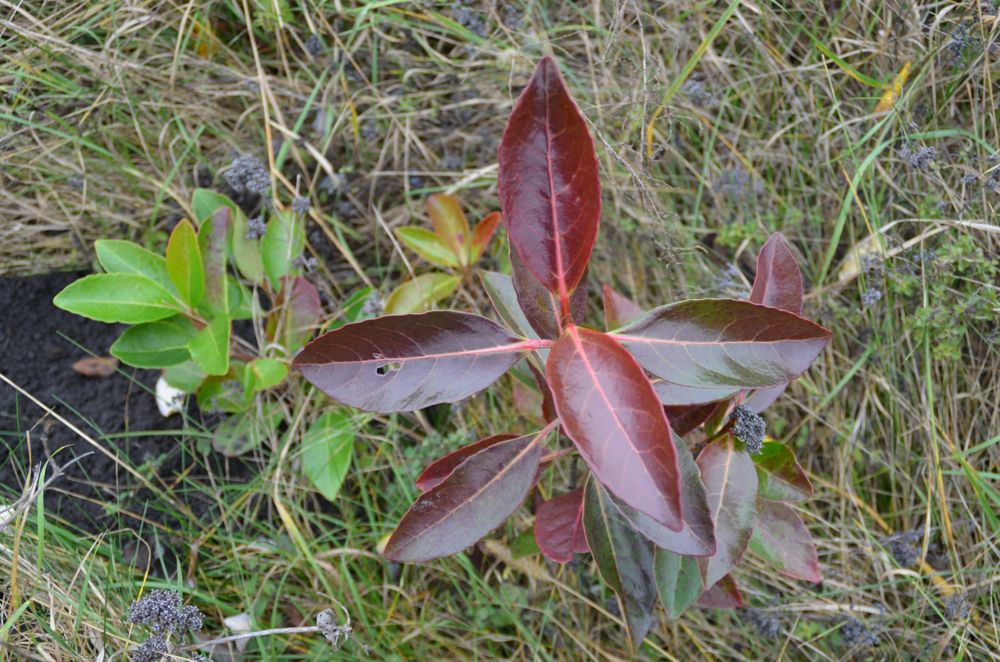 Ein fanatastischer Exot, leider nur bis ca -12 hart: Viburnum lucidum. Die immergrün glänzenden Blätter werden in der Wintersonne rot gefärbt. Bei tiefen Temperaturen ist guter Winterschutz überlebenswichtig!
