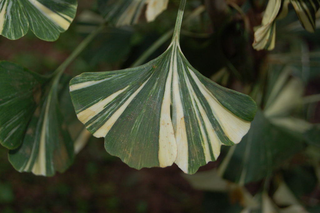 /*Gingko biloba Variegata*/ eine panaschierte weibliche,veredelte Selektion, die leider oft ins Grüne zurückschlägt aber dafür nicht ganz so groß wird! AM#