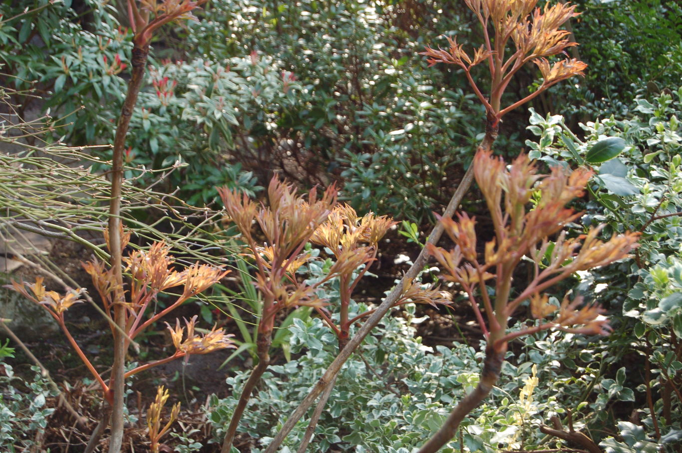 ...aber die Blätter sind auch nicht "von schlechten Eltern": /*Paeonia suffruticosa-Sorte*/#AM