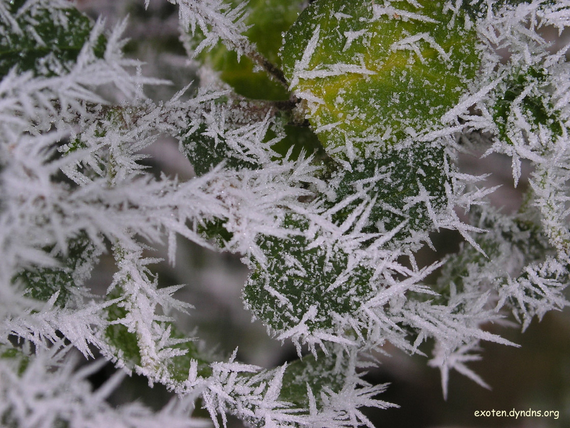 Die schönen, bösen Kristalle, die leider manchmal die Zellen unserer geliebten Exoten zerstören, hier auf Hibiscus syriacus.