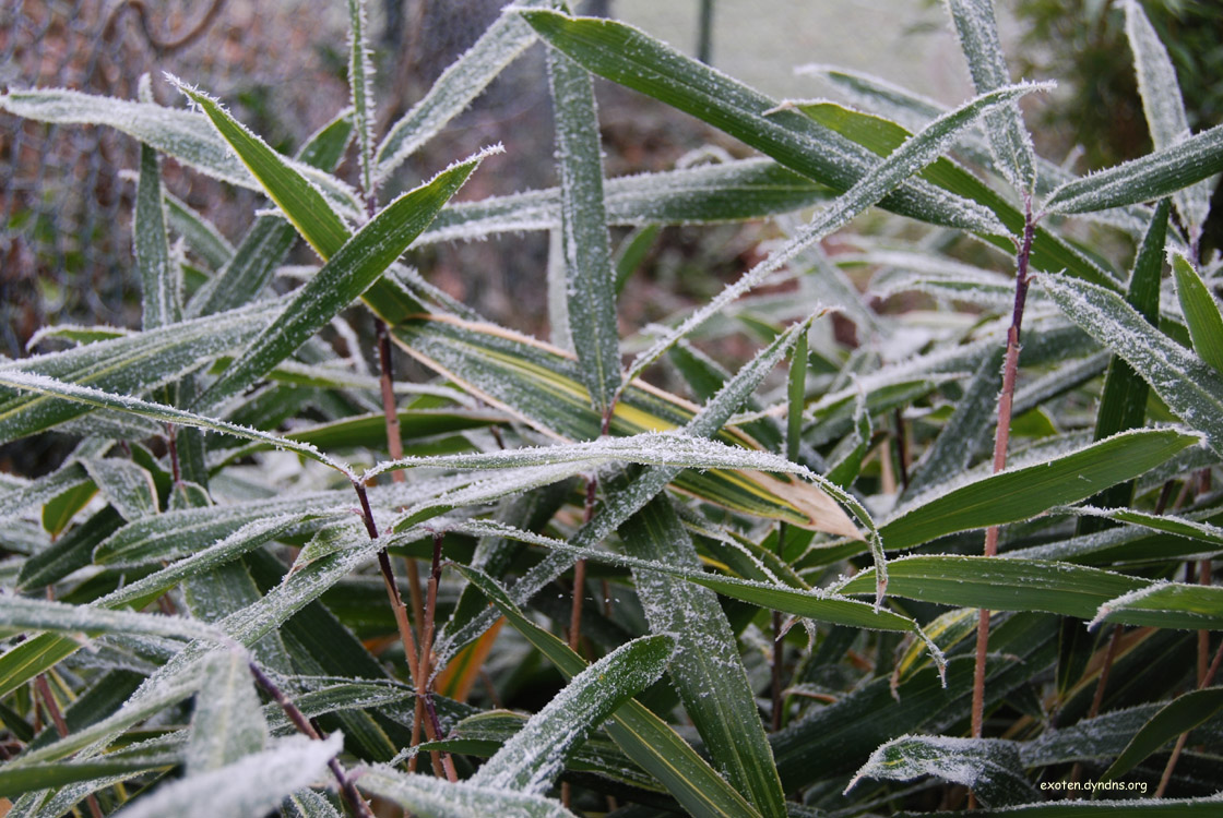 Wenigstens jetzt habe ich vor seinen unermüdlichen Ausläufern Ruhe: Hibanobambusa tranquillans "Shiroshima"
