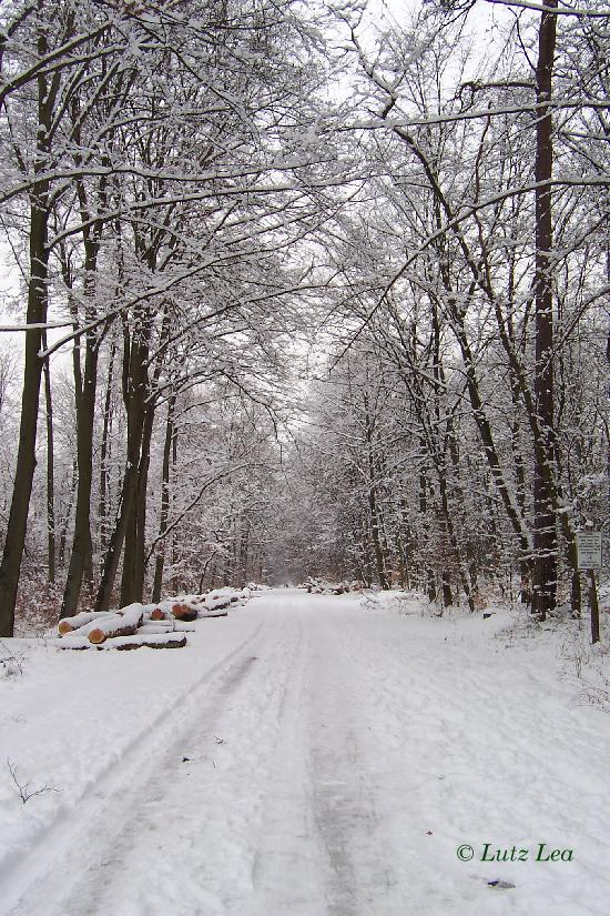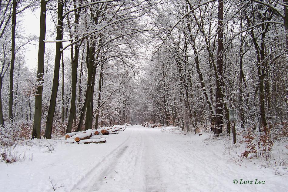 als ich heute Mittag vom Frankfurter Flughafen nach Langen/Neurott zurück gekommen bin, hielt ich kurz an der Leitplanke, welche die Einfahrt zur alten Aschaffenburger Strasse in den Wald versperrt an, und machte zwei Bilder vom dortigen verschneiten Wald (hauptsächlich Buchen und Kiefernvorkommen). Es hat übrigens seit gestern Nachmittag/Abend nicht eine Flocke mehr geschneit. Ich habe dann noch heute gegen Abend trotz der 20-25 cm hohen Schneedecke meinen Waldlauf durchgezogen. Es ging besser als ich dachte. Irgendwo war immer ein Trammpelpfad oder eine Autospur (von den Jägern und vom Förster) im Schnee zum Laufen entstanden.