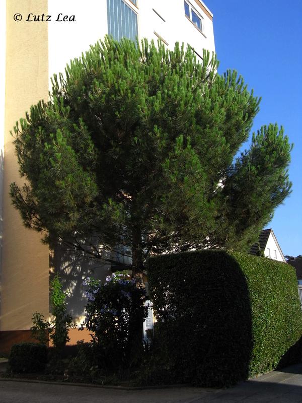 Pinie 'Pinus pinea' in Sprendlingen am Wohnhaus hat deutlich zugelegt, PIC 1-3+Archiv-Links