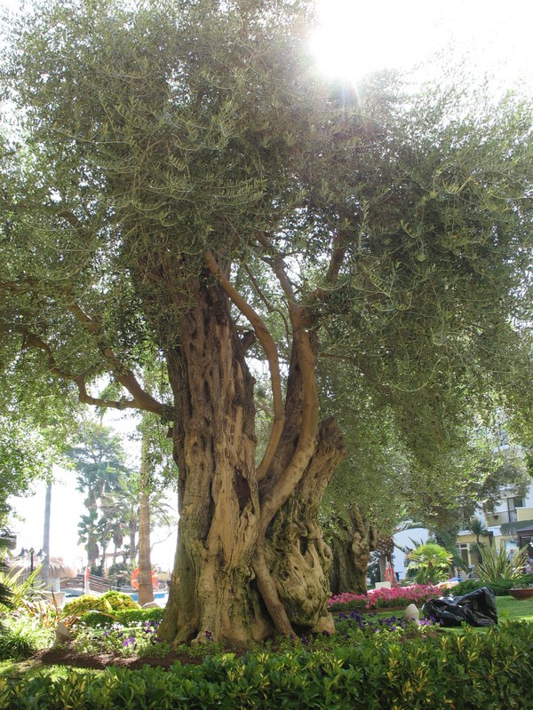 ja die dritte im Bunde mit der perfekten Krone - kaum einem wird es auffallen - ist eigentlich ein Mogelpackung! Der dicke Stamm - absolut tot. Von vorn und hinten wurde eine dünne Jungpflanze dagegengepflanzt und diese bilden inzwischen mit dem Altstamm eine Einheit. Einmal aufmerksam geworden, habe ich dann anderswo auch ähnliche "Kunstwerke" entdeckt.