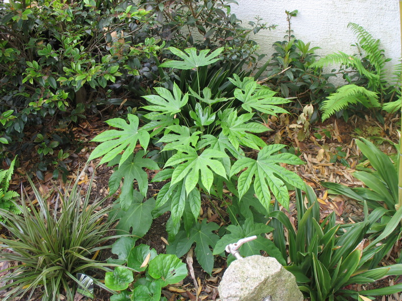 für meinen durch Wintereinfluss jugendlich verschiedenen 3 m hohen Drimys winteri: Fatsia polycarpa. Mal sehen, ob die filigrane Taiwanesin mehr aushält als der Chilene??