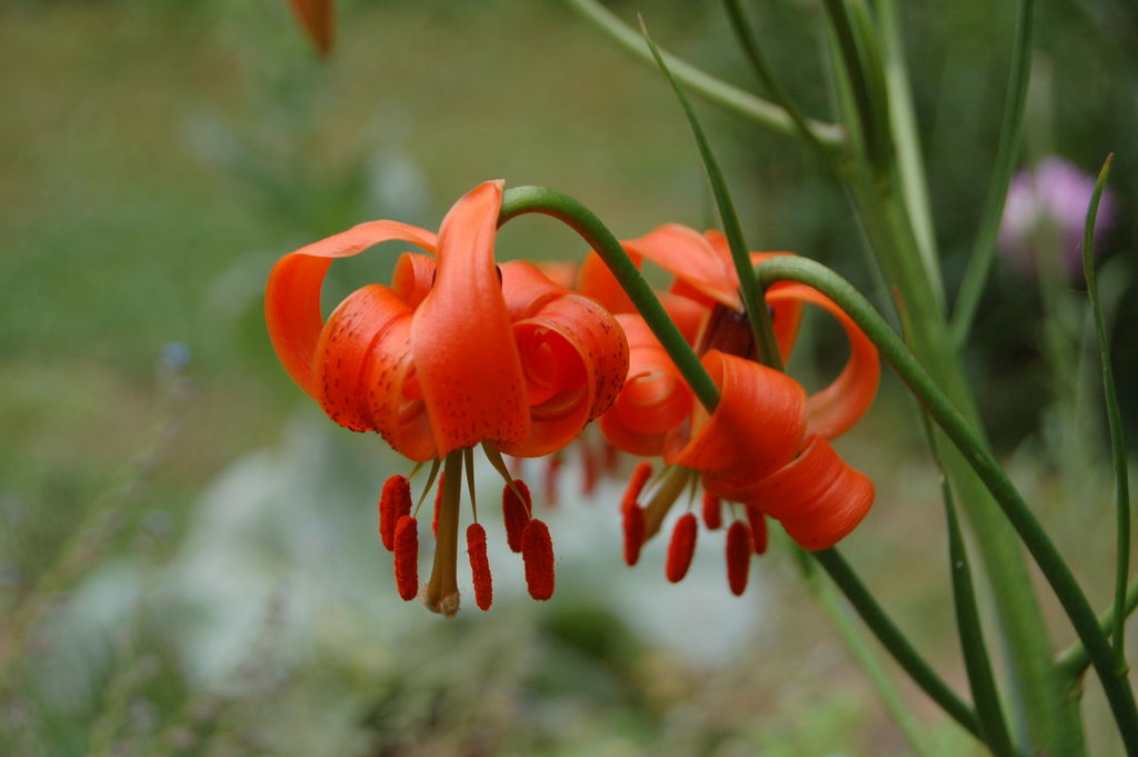 /*Lilium pomponium*/ aus Norditalien wird v.a. wegen ihrer grasartigen Laubblätter und der wunderschönen orangeroten Blütenfarbe gepflanzt
