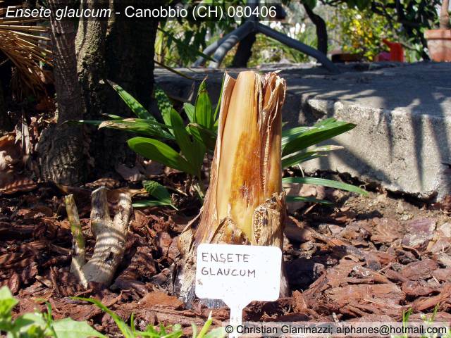 ich hatte letztes Jahr im Juni eine im Winter 04/05 gezogene Ensete glaucum ins Freiland gepflanzt. Sie ist dann ziemlich rasch gewachsen, und im Dezember, nachdem die Blätter erfroren waren, habe ich sie, mit einer ca. 40 cm hohen Laubschicht gemulcht, für den Winter vorbereitet; der Standort selber bietet auch einen gewissen Schutz, sie steht unter einer 40-jährigen mehrstämmigen Cordyline australis.