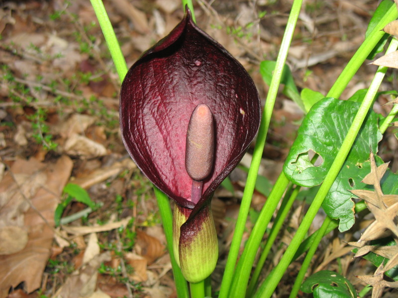 . Nur mit Blitzlicht erscheint die Blüte von /*Arum nigrum*/ in Purpur