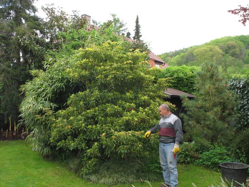 das mit dem Alter ist ganz schwer einzuschätzen. Trochodendron wächst gar nicht so sehr langsam, wenn Standort und Boden stimmen. Ich hatte in der Vergangenheit so einige in Gärten gepflanzt. Leider bekomme ich nur noch die wenigsten davon zu sehen. Halbwegs frei und sonnig bis halbschattig gepflanzt werden sie sehr schön dicht buschig. Zu schattig sind sie meist ganz gagelig mit sehr vereinzelt angeordneten Blattquirlen.