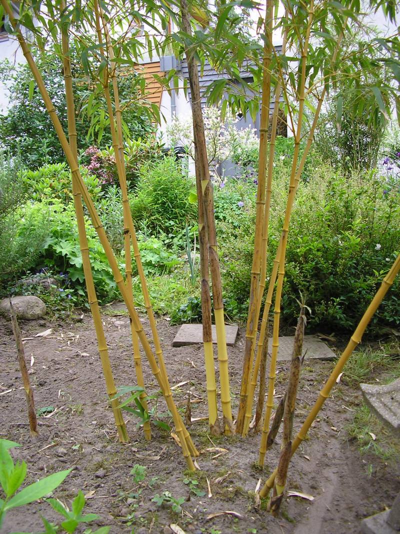 Gestern habe ich bei der Ph. vivax aureocaulis weglaufende Rhizome gekappt, dazu noch einige schräg stehende Halme abgeschnitten. Natürlich wird er so in seiner Wuchskraft geschwächt, aber so in Form gebracht gefällt es mir einfach besser. Die andere Alternative wäre eine großzügige Rhizomsperre....
