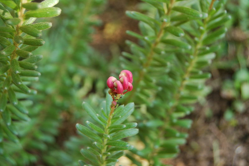 /*Grevillea lanigera Mount Tanboritha*/ blüht erstmals bei mir. Sie sieht ohne Blüten aus wie eine Konifere!!
