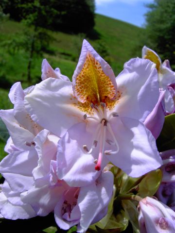 Auch im Odenwald blüht der frisch ausgepflanzte Rhododendron: