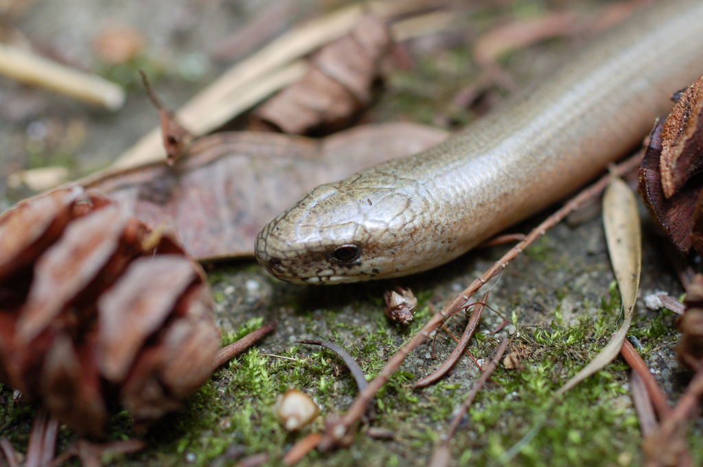 Es ist zwar keine Schlange sondern eine Blindschleiche aber sie wohnt mit ihren Verwandten seit Jahren hier zur Untermiete![]()