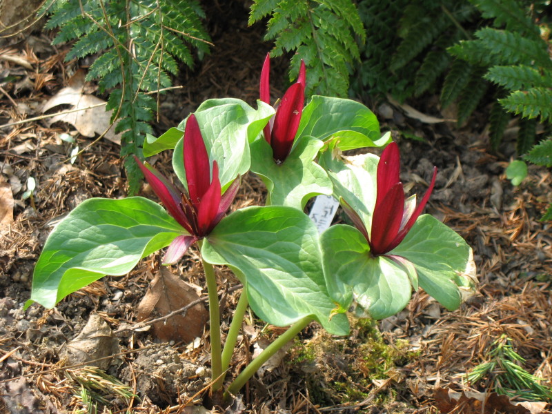 eine Neuerwerbung von der diesjährigen Raritätenbörse im Palmengarten Frankfurt:/*Trillium kurabayashii*/. Dort blühend teuer erworben ist die Pflanze immer noch in Vollblüte!