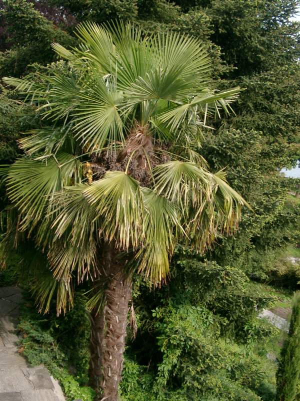 An der italienischen Wassertreppe steht auch ein schönes Trachy-Paar mit reichlichem Samen-Behang.
