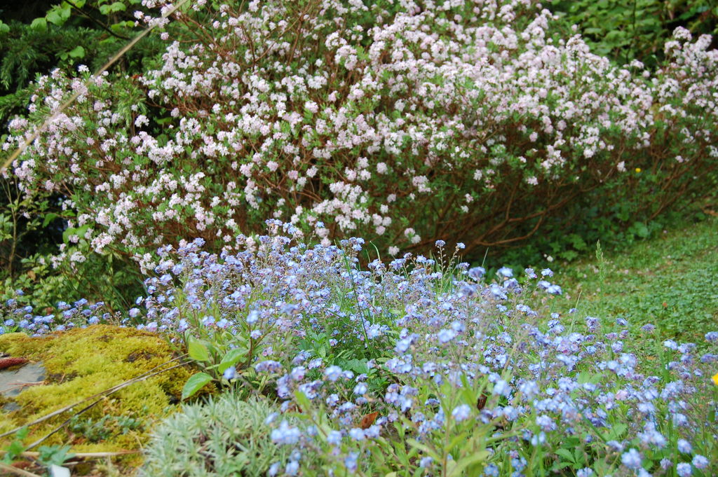 Übrig geblieben sind Vergissmeinnicht,Acantholimon und die riesige /*Daphne x burkwoodii*/ mit ihrem wundervollen Duft!!