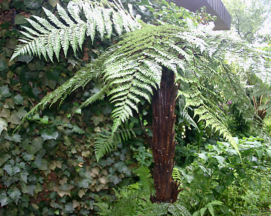 Ich habe eine Dicksonia squarrosa, die inzwischen 1 m Stamm gebildet hat. Sie steht in Seramis, im Sommer schattig im Garten, im Winter im frostfreien Gewaechshaus. Ich giesse taeglich, duenge sie regelmaessig und habe auch Superthrive gelegentlich beigegeben. Sie gedeiht dabei ganz praechtig. Das Bild stammt aus dem Fruehsommer.