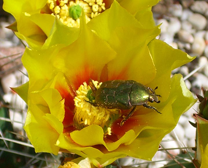 weiss jemand was da für ein käfer drauf rumkrabbelt? ob der schädlich ist? zumindest war er fleißig beim bestäuben und voller pollen