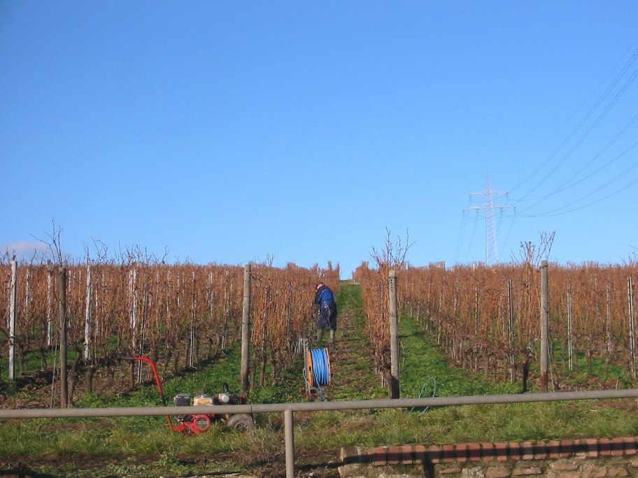 Pic 5: Der Chef beim Rebenrückschnitt! Da macht das Arbeiten Spaß bei so einem sonnigen und milden Wetter wie heute