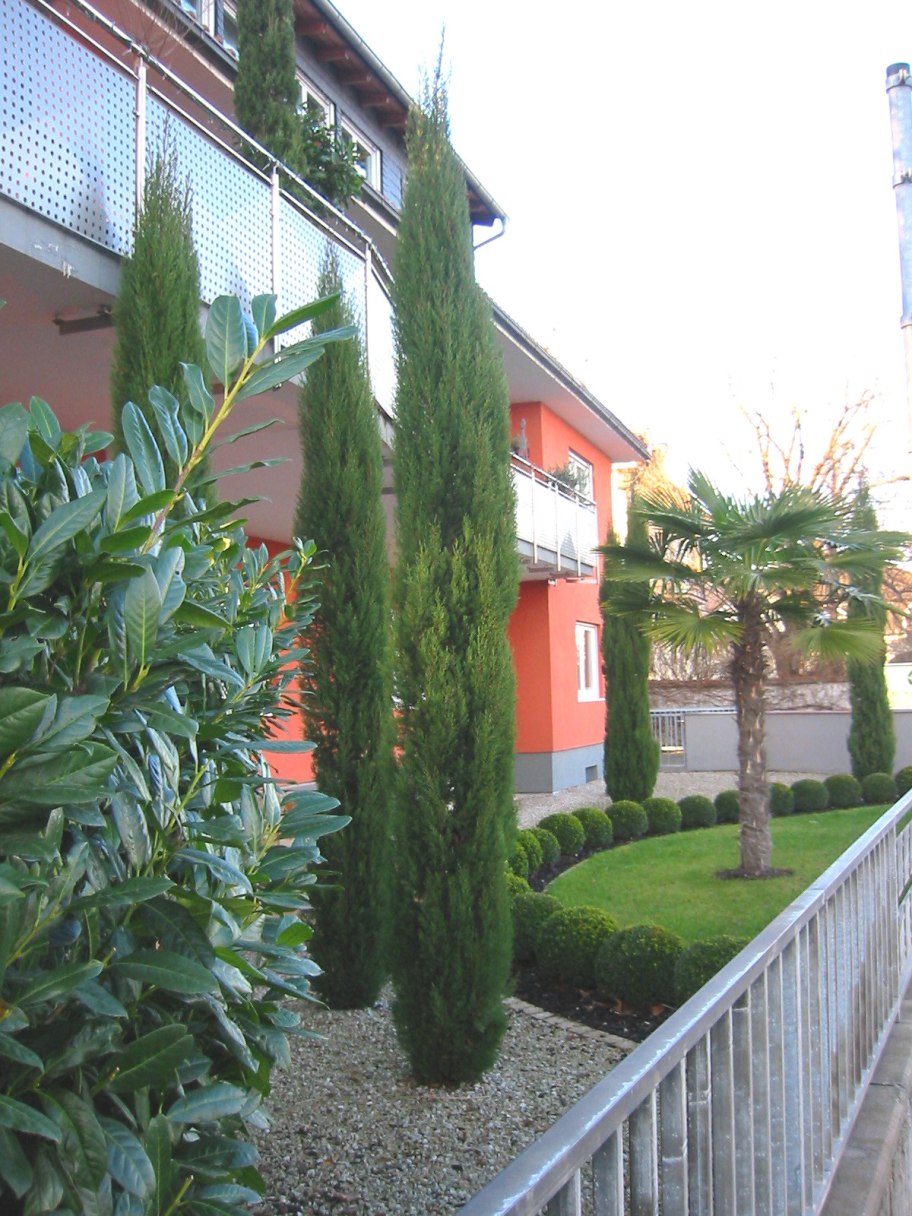 diese Zypressen mit der Trachy die im Vorgarten einer „Korkenfabrik“ in Nierstein am Rhein stehen, wurden vor ca. 5 Jahren recht klein gepflanzt.