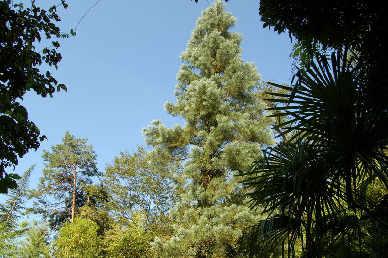 /*Sequoiadendron giganteum Glaucum*/ fruchtet regelmäßeig und dürfte über 15m hoch sein (1983 gesetzt)
