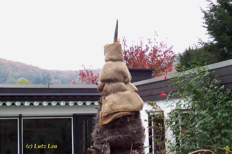 Rechts hinten die an der Stammspitze mit Jute umwickelte Trachy ist der "Patient".