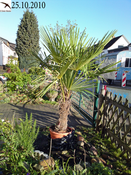 noch mal meine Trachy aus Dormagen im Oktober 2010 hatte ich für 55 € die Trachycarpus fortunai (chamaetops exelsa) herkunft Valencia Spanien gekauft.