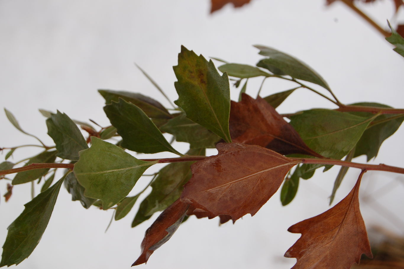 auf weißem Hintergrund wrken die meisten Gehölze wie Scherenschnitte, hier Baccharis halimifolia