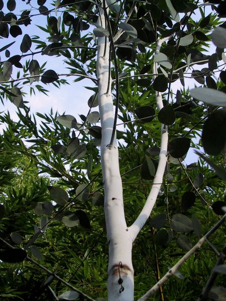 Phantastisch wirkt v.a. die schneeweiße Rinde des Tasman.Berg-Eucalyptus (E.gunnii,Blaue Form)