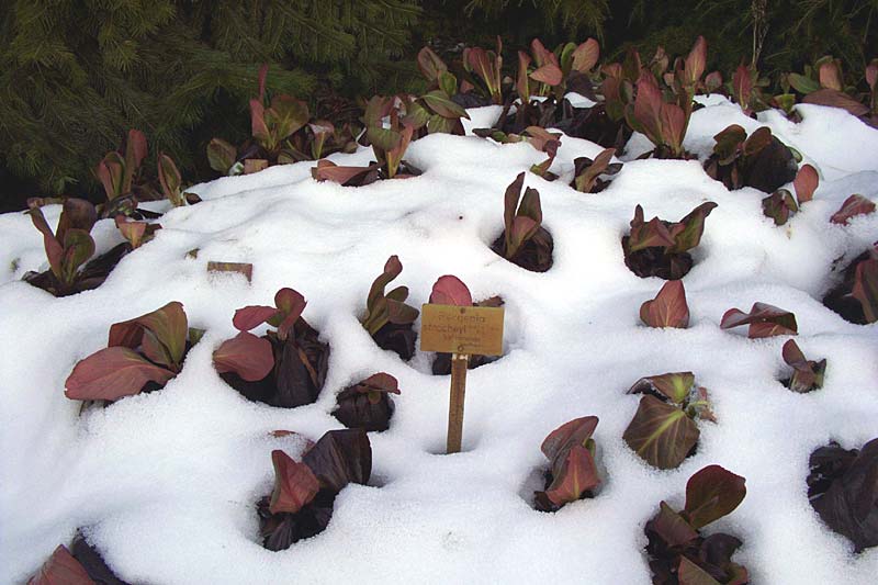 Bergenia stracheyi aus dem Himalaya findet man aber auch in jedem Gartencenter