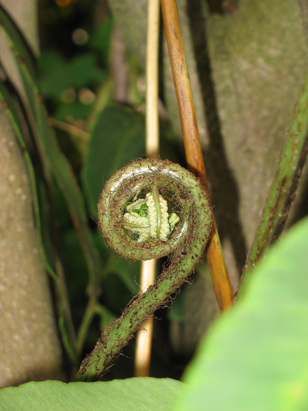 Neuaustrieb des sehr exotisch wirkenden Farnes /*Dryopteris sieboldii*/