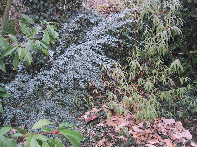 1. /*Azara microphylla*/ zwischen /*Photinia davidiana*/ und re /*Stachyurus salicifolius*/