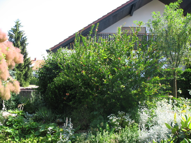 die - 16 °C haben diesen Punicum granatum im östlichen Ortsrand Rheinstetten nicht im geringsten beindruckt. Die Pflanze ist ca. 3 m hoch und wurde allem Anschein nach in der Vergangenheit gekappt.