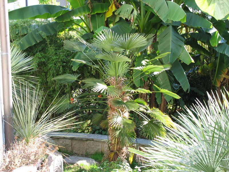 Trachycarpus wagnerianus hat sich dieses jahr gut entwickelt. Die abgestorbenen Wedel werde ich von an an bei dieser Pflanze versuchsweise am Stamm lassen und den Naturlook wagen. Das wird mir sich wieder viel Kritik von ordnungsbewußten Besuchers einbringen.